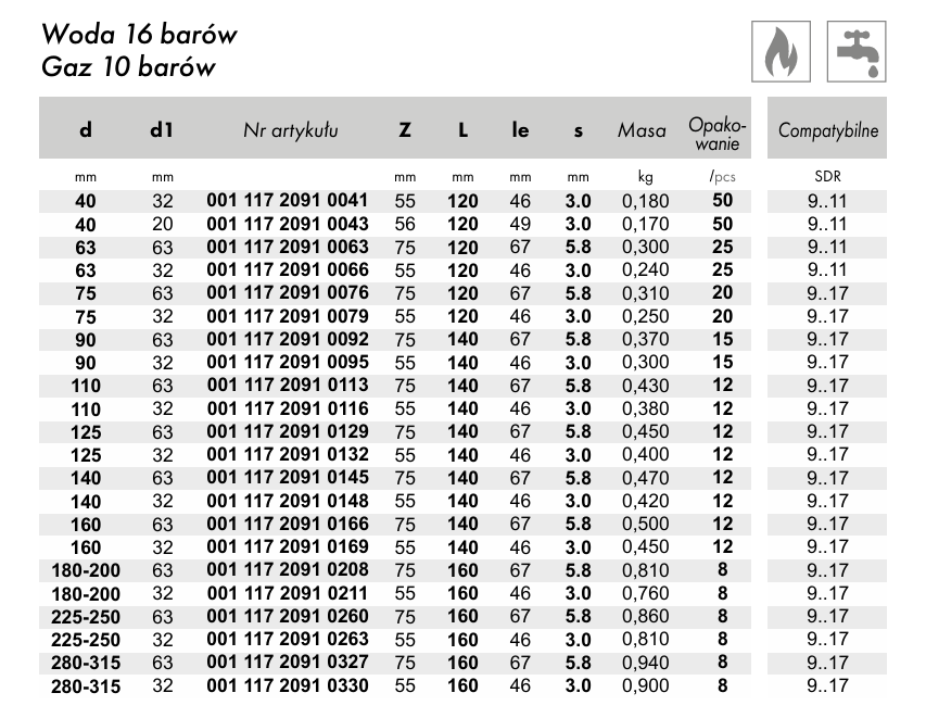 Ø40/32, Ø40/20, Ø63/63, Ø63/32, Ø75/63, Ø75/32, Ø90/63, Ø90/32, Ø90/40, Ø90/25, Ø110/25, Ø110/40, Ø110/63, Ø110/32, Ø125/63, Ø125/40, Ø125/32, Ø140/63, Ø140/32, Ø160/63, Ø160/32, Ø180-200/63, Ø180-200/32, Ø225-250/63, Ø225-250/32, Ø280-315/63, Ø280-315/32, Ø180-200/63, Ø180-200/32, Ø225-250/63, Ø225-250/32, Ø280-315/63, Ø280-315/32